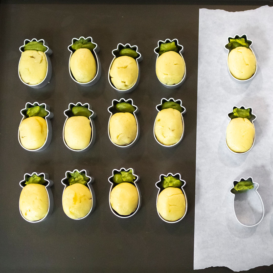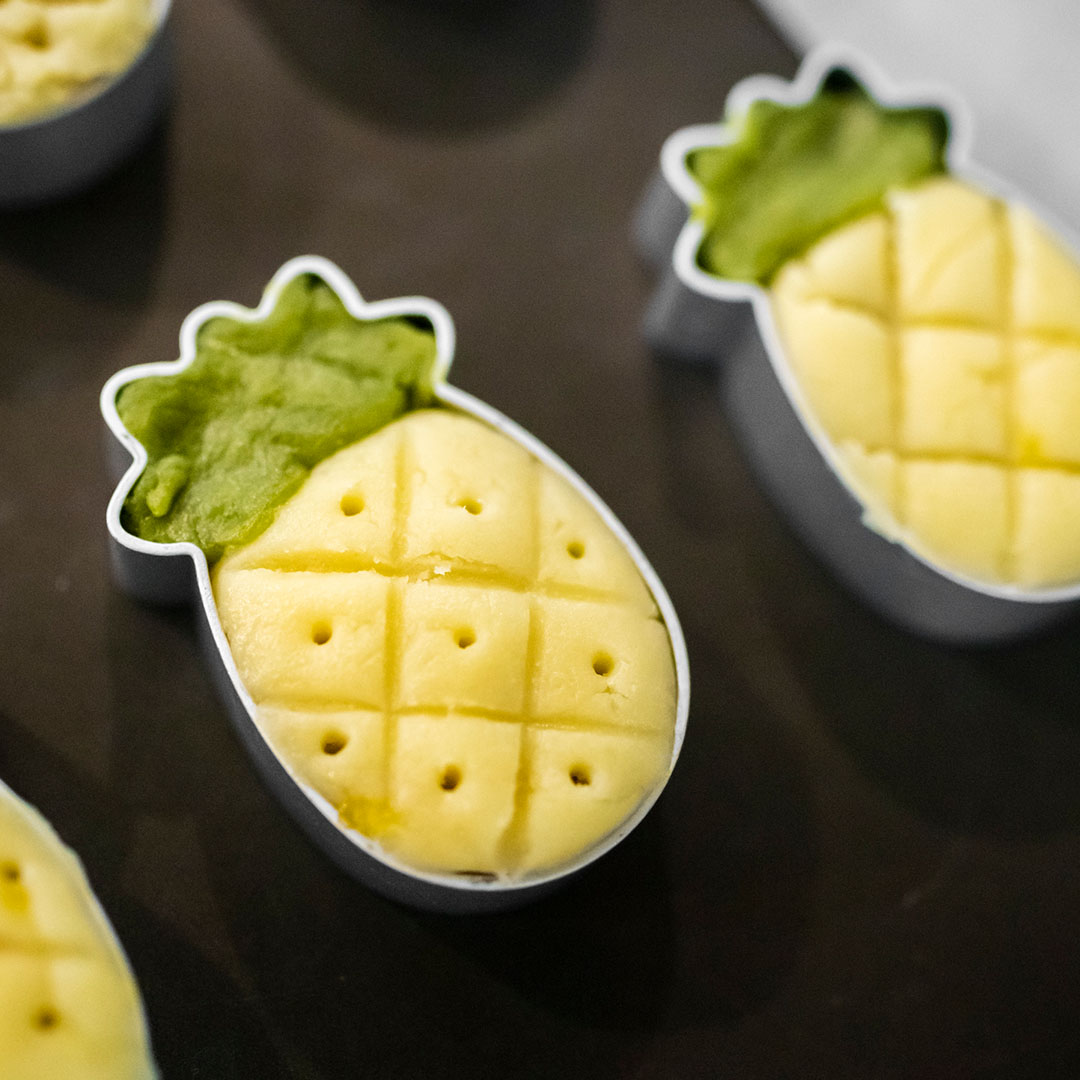 Inspired by the adorable and distinctive pineapple shape of the product, I created the logo with the exact shape as the baking mold of the product itself. The brand upheld the idea of sharing is having more, and would like the logo to reflect the "Miracle of the Five Loaves and Two Fish" story from the Bible. Hence, I overlapped the lines into two fishes, while the fishes formed five sections in the middle of the logo.