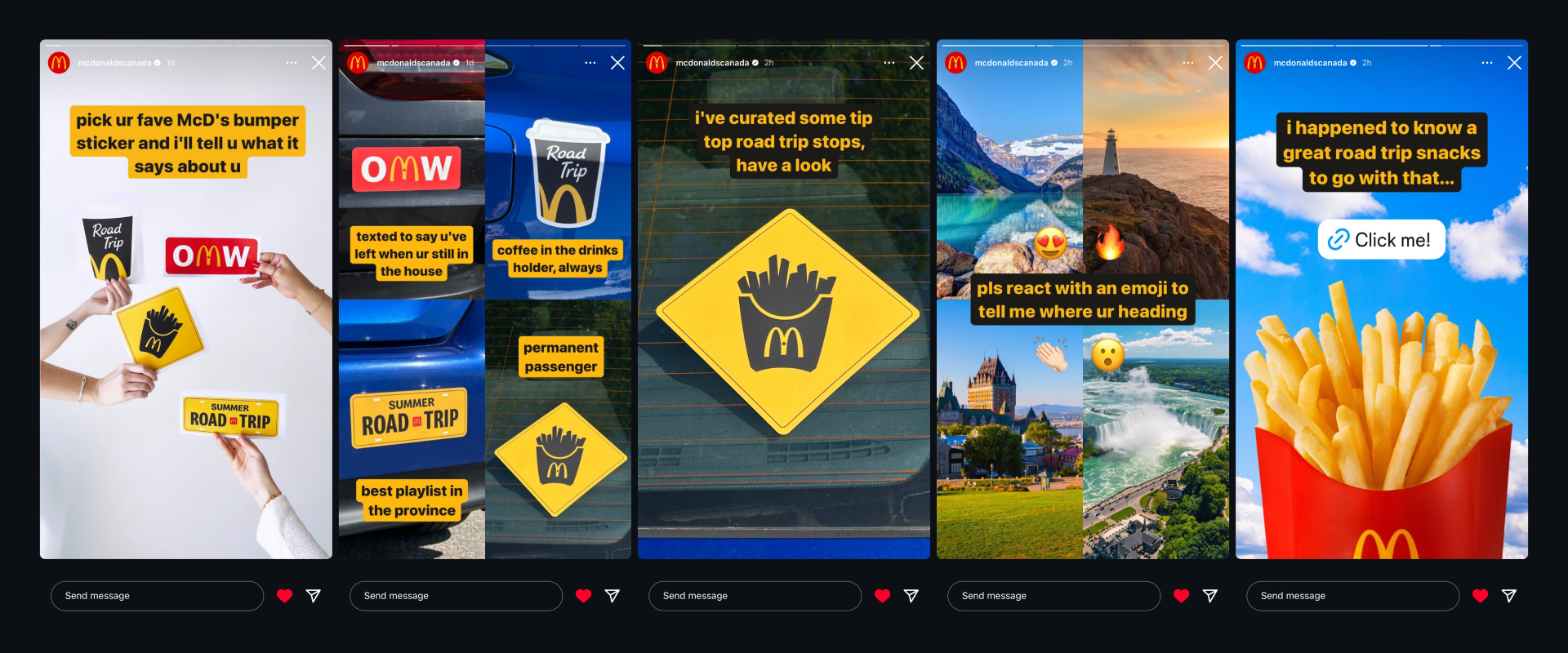 The Summer Road Trip campaign was a mini social hero initiative aimed at engaging Gen Z fans. Centered around the concept that McDonald's is the essential pitstop on any road trip, the campaign highlighted the key moments of taking a break and refueling with McDonald's. I was responsible for designing a range of visual assets, including creative wrappers, bumper stickers, postcards, in-feed graphics, and Instagram story visuals. The campaign was highly successful, with fans especially thrilled by the surprise bumper stickers.Display Ad Design